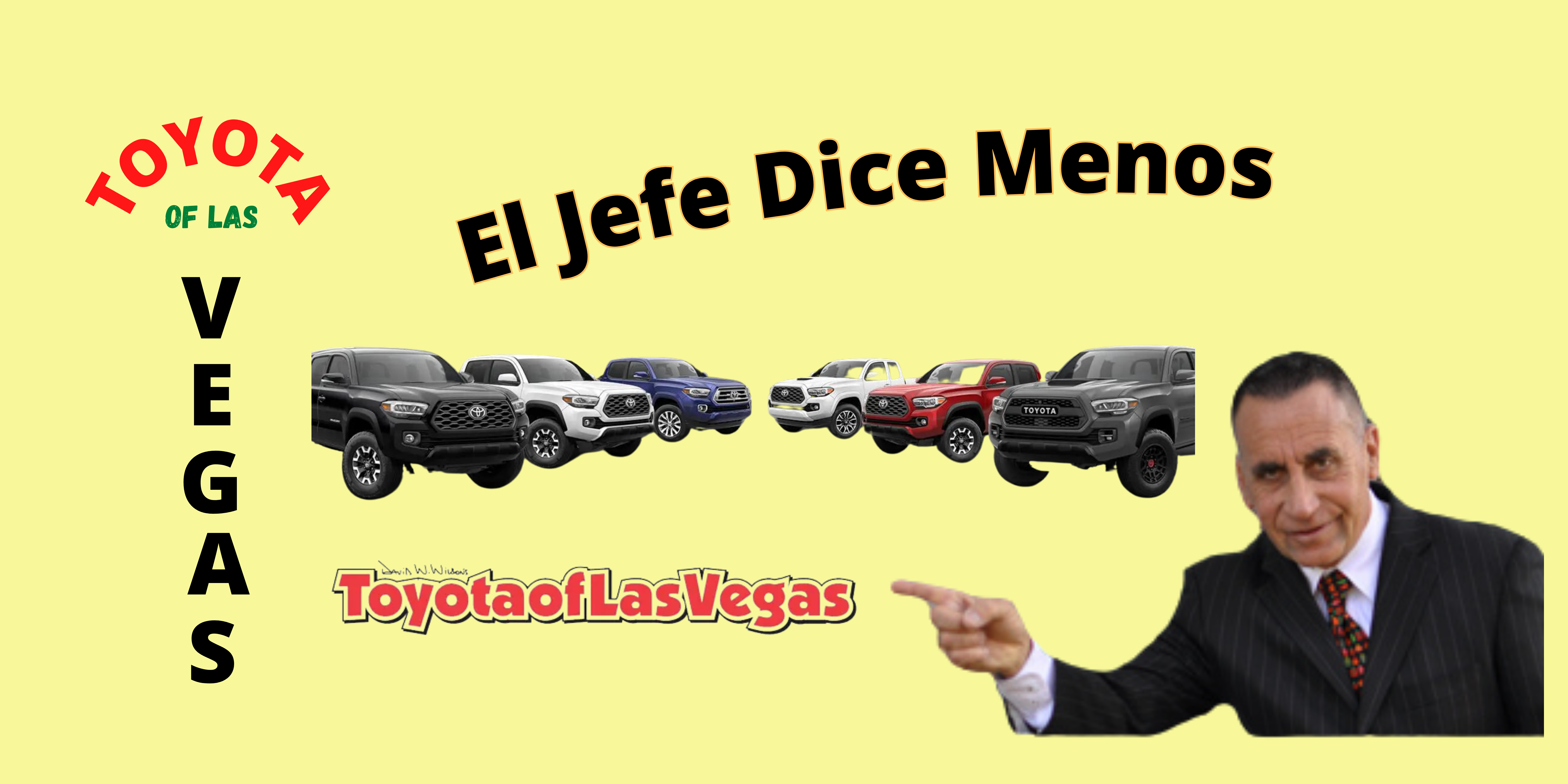 Tenemos nuestro propio programa “El Jefe Dice Menos” también tenemos un canal en Youtube donde tenemos un programa cada semana, y enseñamos nuestra mejores ofertas el día Sábado. Visite al Jefe en el David Wilson’s Toyota Of Las Vegas y compruebe nuestros mejores precios.